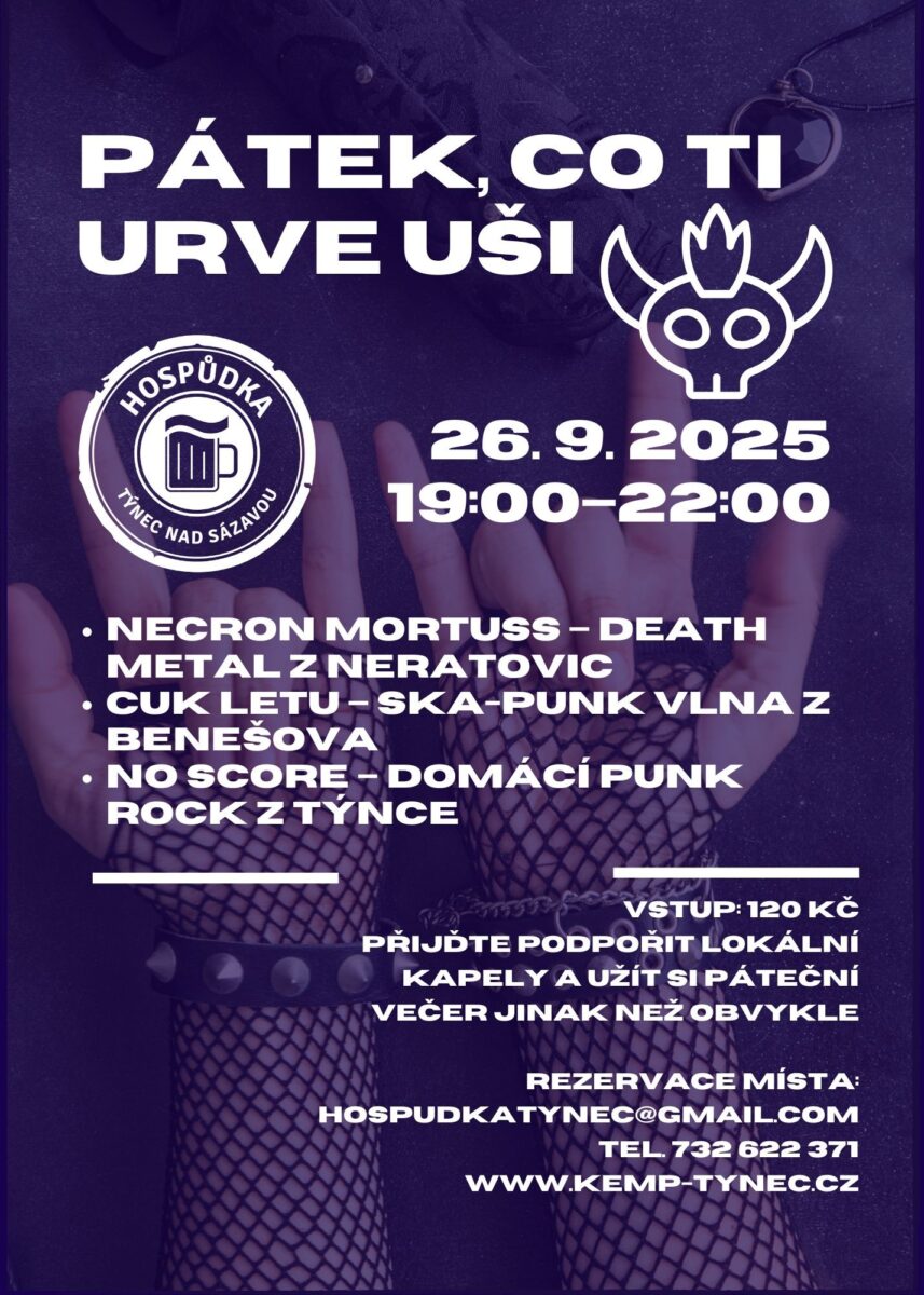 Už tento pátek 26. 9. od 19 HOD to u nás rozjedou tři kapely, které do Týnce přivezou pořádnou dávku energie: