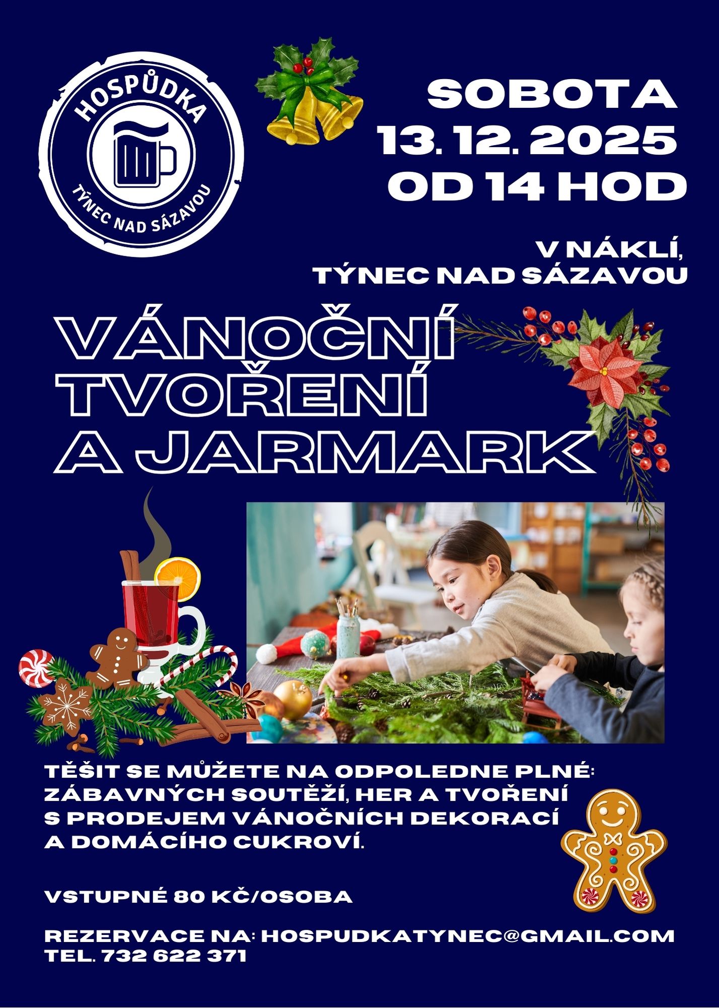 🎄 Adventní čas – těšit se můžete na Vánoční tvoření a jarmark s domácím cukrovím, dekoracemi a odpolednem plným zábavy i vánoční nálady.