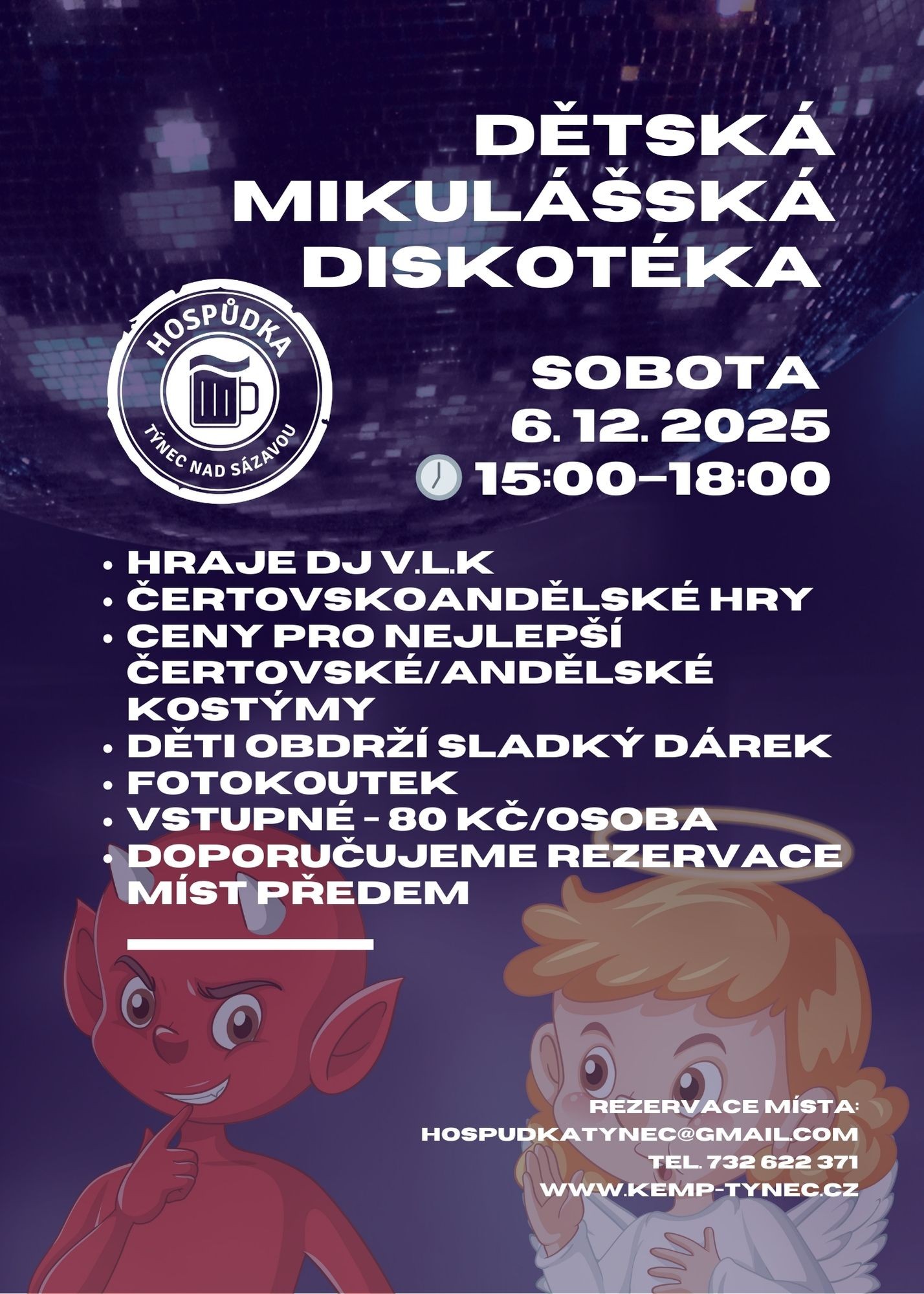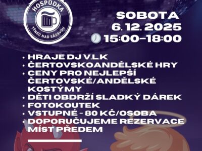 👧👦 Akce pro děti – chystáme Dětskou mikulášskou diskotéku s čertovsko-andělskými hrami, sladkými dárky a fotokoutkem. Tvořivé odpoledne nabídne i Podzimní tvoření a Drakyádu nebo předvánoční dílny.
