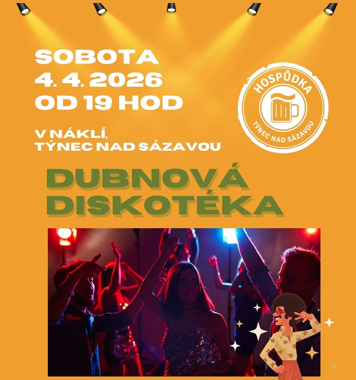 🪩 Sobota 4. dubna – Dubnová (velikonoční) diskotéka (19:00)
